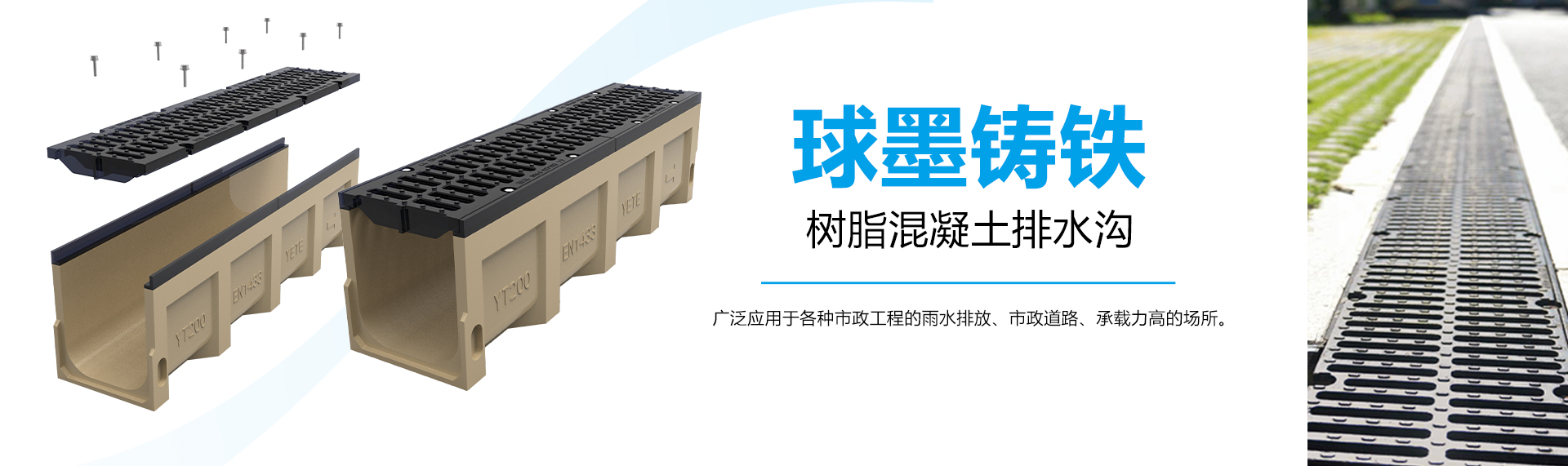 樹(shù)脂混凝土排水溝適用于大多數(shù)項(xiàng)目,尤其對(duì)承載要求較高的場(chǎng)所,如市政道路、館場(chǎng)賽道、機(jī)場(chǎng)碼頭等。